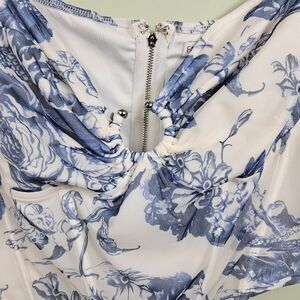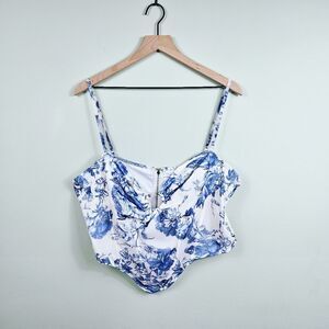 Brand new with tags! Romantic floral print corset with a sweetheart neckline, sleeveless design, and adjustable straps. Features front hardware detail, supportive boning, back zipper closure, and stretch for a comfortable, flattering fit. Women's plus size 2X. Measurements in photos.