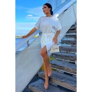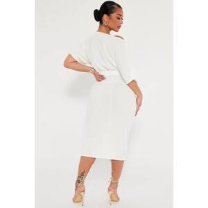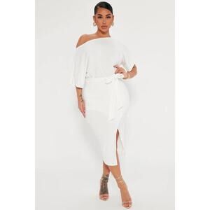NWT Fashion Nova Please Hold Midi Dress White Size Small One Shoulder Bodycon