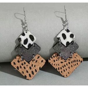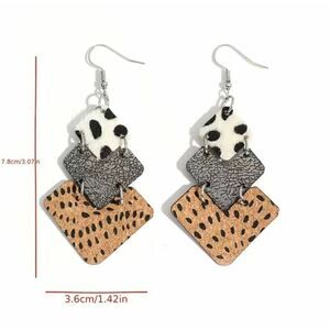 NWT Fashion Jewelry Western Vintage Cow Pattern Leather Earrings