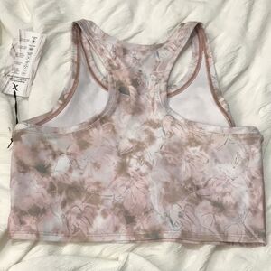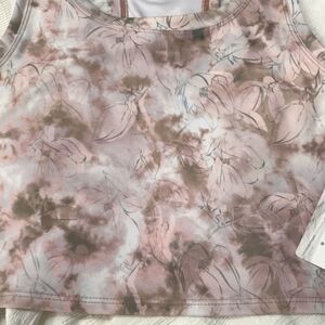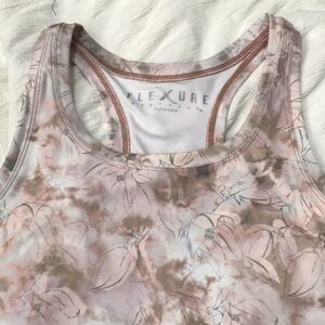 NWT- Flexure - L. Light pink/gray floral print, workout tank, laying flat armpit to armpit measures 18” & length 17.5”