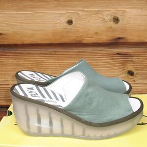 NWT Fly London Jade Green Wedge Slides