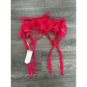 NWT For Love & Lemons Evie Lace Red Garter Belt Size Small