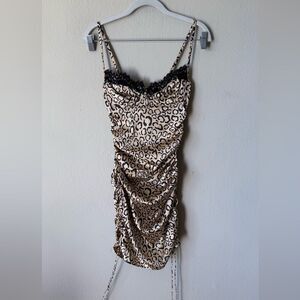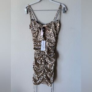 NWT For Love & Lemons Frankie Mini Leopard Dress Black Brown Size XS