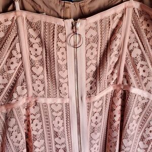 Gorgeous peach colored For Love & Lemons Dakota Lace Midi Dress. Equal parts girlie and sexy, the Dakota Lace midi dress is perfect for any occasion. Just add nude heels and you're ready to go!