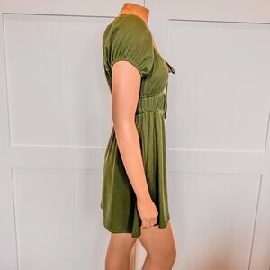 NWT-Francesca’s Melanie Short Sleeve Mini Baby Doll Dress, Dark Green