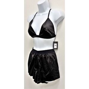 NWT Frederick's of Hollywood Ginny 2 Pc Sleep Set Black Satin Womens Medium