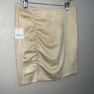 Free People Cinched Seam High Rise Slit Detail Faux Suede Avas Mini Skirt