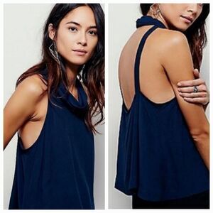 🔹️NWT Free People Blue Rayon Cowl Neck Open Back Sleeveless Top Large
