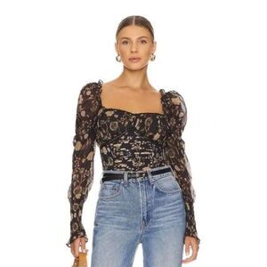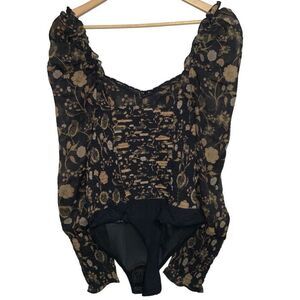 NWT Free People Brunch Date Bodysuit Floral Black size S