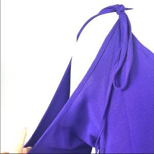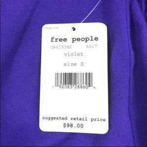 Free People Clear Skies cold shoulder tunic -S New with Tags. Cold-shoulder styling lends a fresh appeal to this asymmetrical violet tunic from Free People. Rock it as a top or mini dress! Scoop neckline; pullover style. Cut out at shoulders; tie detail at right shoulder; asymmetrical hem. Easy fit; hits below hip. Rayon/spandex. Machine washable. Style OB6133982. Approx measurements - across bust 21"", legngh 32.5"", sleeve 15.75" Sz Small.