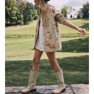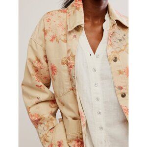 NWT:Free People Floral Jean Jacket - Cream and Pink Size XL