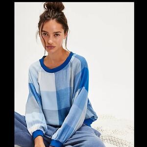 NWT Free People Intimately Sugar Cookie Flannel Pullover - Chambray Combo