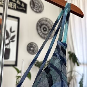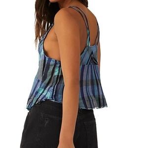 NWT Free People Plaid Cotton Tank Flowy V Neck Navy Combo Feminine S M Nautic