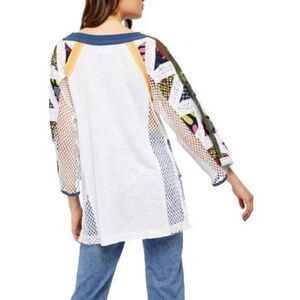 Free People's wild Serengeti top is a fun mix of sheer net and printed pieces.