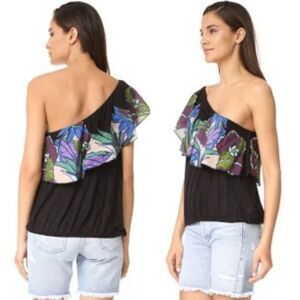 New with tags. Really fun one shoulder top. The ruffle extends from one shoulder across the front and under the other arm, all the way around the tank. Flirty and flowy gauze type fabric. Size xs