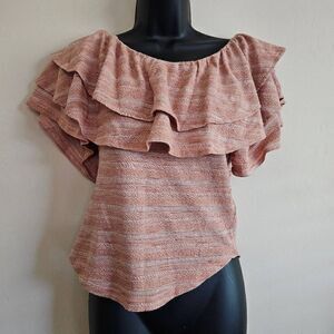 This is a new with tags blouse by Free People. The style name is Heirloom and the color name is doe combo. This blouse has a tiered and ruffled neckline with short sleeves underneath.