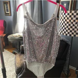 NWT Free People Shimmer & Shine Bodysuit. Color is called Frost (Silver). Size large.