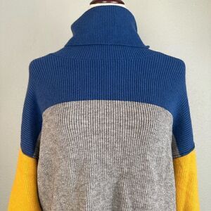 super cute color block sweater! measures 21 inches armpit to armpit and 25 inches shoulder to hem