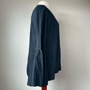 super cute black top! measures 20 inches armpit to armpit and 27 inches shoulder to hem