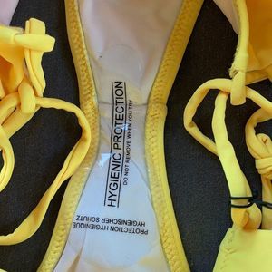 Freedom Beachwear Yellow Bikini set. Made with love in the Dominican Republic. Great quality. Brand new with tags and hygienic protector on the bottoms. XS, true to size. Adjustable cleavage and adjustable bottoms. High waist. Measurement chart is posted. Let me know if you have any questions ☀️