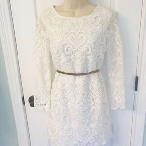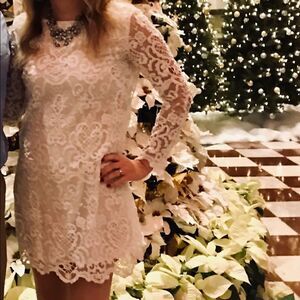 NWT French Connection Nebraska Lace Tunic Dress ❤️. This dress is so beautiful and is a great fit! Perfect to dress up for a variety of functions, parties or events and great to dress down with a belt, jean jacket and boots. I love this for a Christmas party or paired with a metallic for New Year’s Eve! This dress won’t disappoint! 😀. Color: Summer White. Perfect for a rustic/fall/outdoor photo shoot! (This dress has never been worn, the dress in the picture is the same dress/different one).
