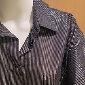 New with tags, metallic silver thread run through this black big shirt from Gap. size L but will fit XL and probably 2X. necklace sold separately