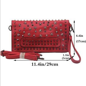 NWTGS Red Vegan Leather Silver Rivet Metallic Studded Crossbody Clutch Bag