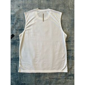 White athletic tank top from Galaxy by Harvic. Moisture wicking fabric. Reflective stripe at back.