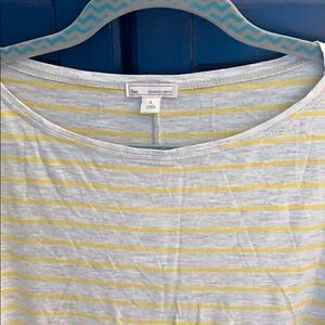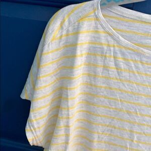 NWT Gap soft oversized cap sleeve tee shirt in Large. Soft gray and yellow stripes with a high low hemline. Armpit to armpit is approximately 22” flat