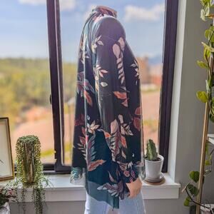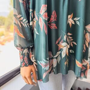 NWT-Gimmicks by Buckle, Leaf Print Mesh Henley Long Sleeve Top, Fall/Autumn and Winter