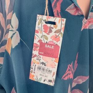 NWT-Gimmicks by Buckle, Leaf Print Mesh Henley Long Sleeve Top, Women’s X-Small