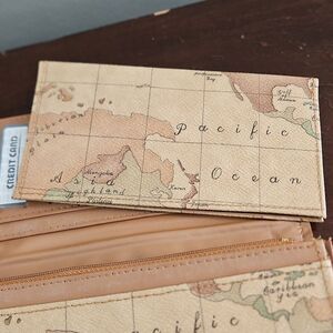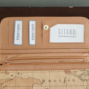 NWT Gitano's wallet with map design features card slots, ID window, checkbook cover,and zippered compartment for change.