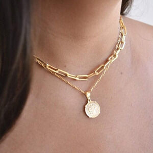 NWT Gold Double Necklace Chocker&Coin Necklace Duo
