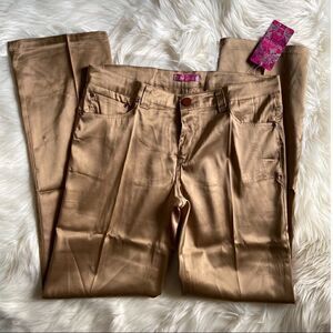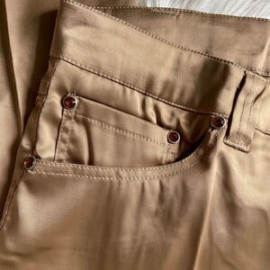 NWT Golden Khaki Nude Satin Shiny Flare Pants