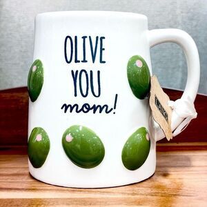 NWT Gorgeous LANG “OLIVE YOU MOM” 3D Green Olives in White Glossy Ceramic Mug