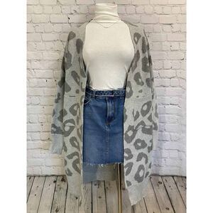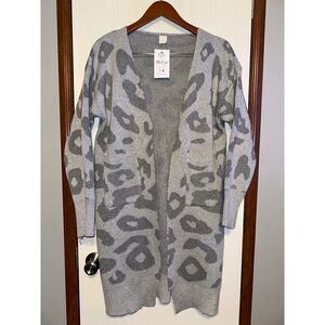 NWT Gray Leopard Open Front Cardigan Size Large