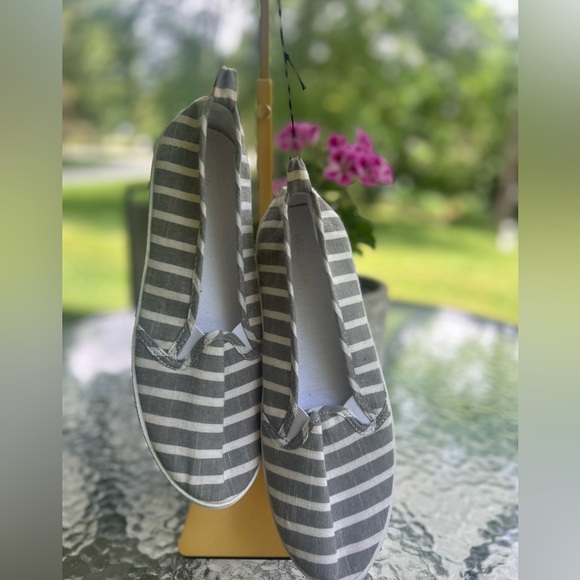 NWT-Gray and White Striped Slip-On Shoes-size 9