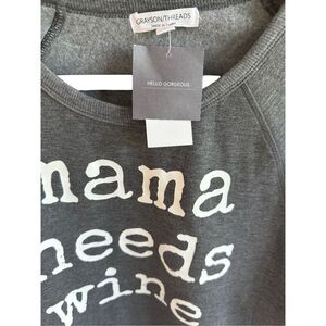 NWT Grayson Threads Womens Gray Mama Needs Wine Pullover Sweatshirt Size Large