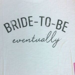 This relaxed fit Tshirt wears comfortably and features a crew neckline and short sleeves. The gray graphic print lettering across the front says "Bride-to-be eventually".