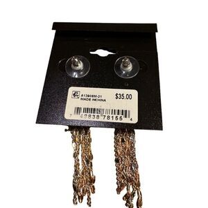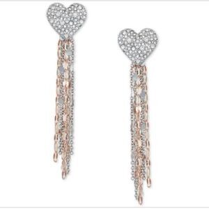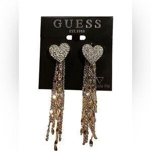 NWT Guess Two-Tone Crystal Chain Fringe Drop 2.5” Earrings