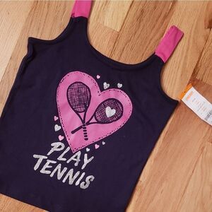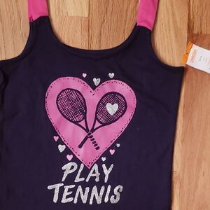 New with tags. Navy jersey tank with play tennis graphic. Girls size 4