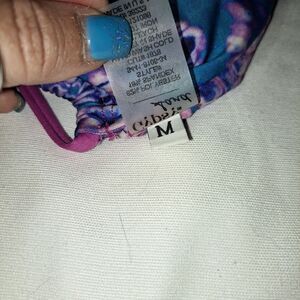 Bikini top, tie dyed style. Has ties for around the neck and back. Lightly padded.