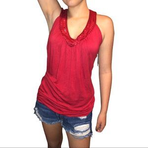 Crimson Red, very slimming. The model is actually a size small, but it still looks great. New with tags.