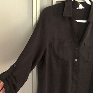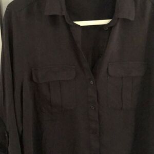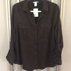 NWT H&M Black button down blouse with patch pockets size 14