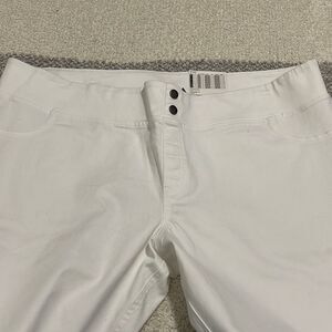 NWT- HUE - XXXL. White leggings/jegging, non functional front pockets, pull on with elastic waist, 29.5” inseam