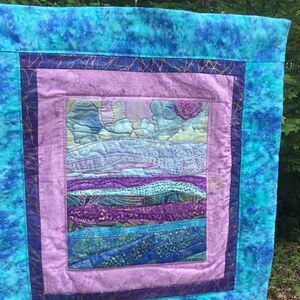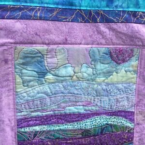 NWT. Hand Crafted Quilted Landscape Purple Mtn.