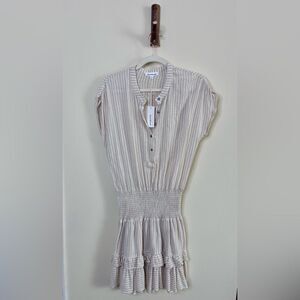 NWT Heartloom Mabel Smocked Dress in the color Sand. Neutral stripes.
