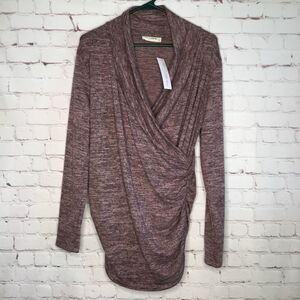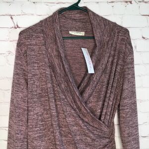 NWT Hello Miz Women's Heathered Pink Long Sleeve Faux Wrap Sweater Size L