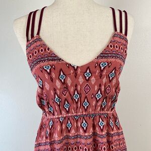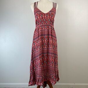 Super cute midi dress by him and thread. It measures 16 inches armpit to armpit laying flat, 13 inches at the waist, and is 45 inches in length from the shoulder to the hem.
