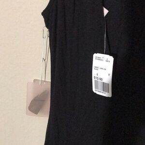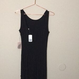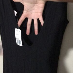 Never been worn, with tags. Has a very high slit on the left leg that looks more like a side high low hem. Deep v back.
